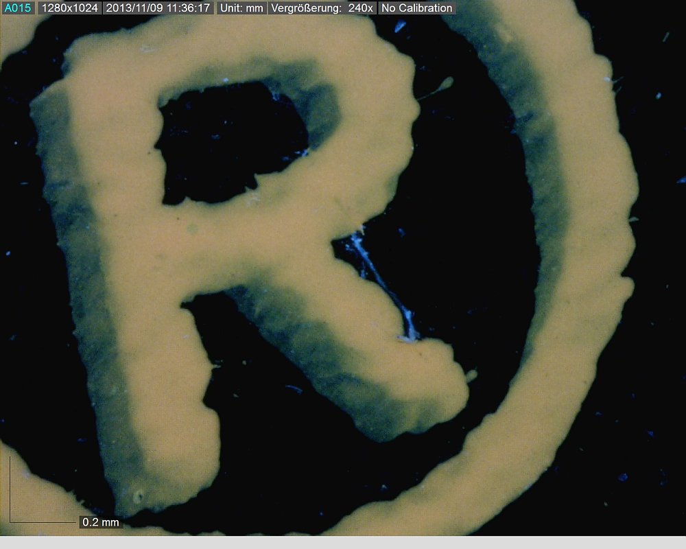 Nicht akzeptabler Passerversatz bei der UV-Lackierung.