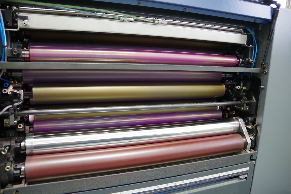 Farbwerk einer Bogenoffsetmaschine.