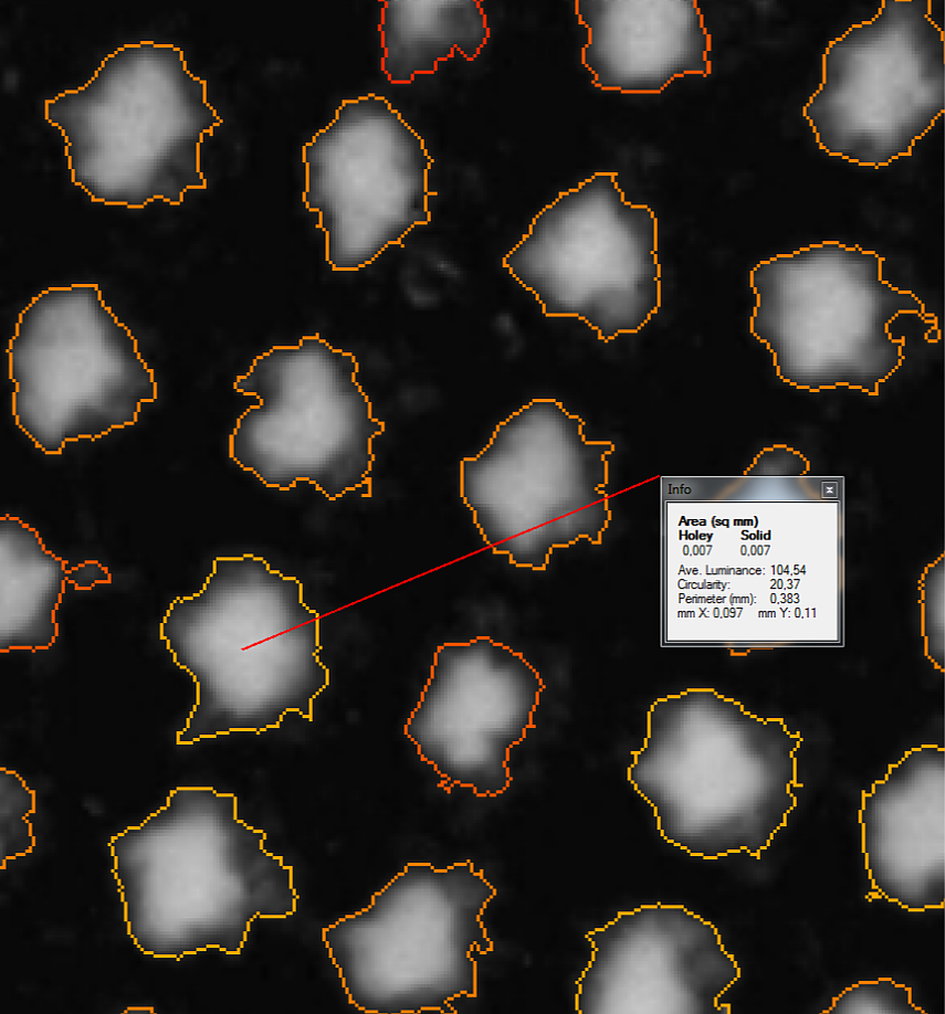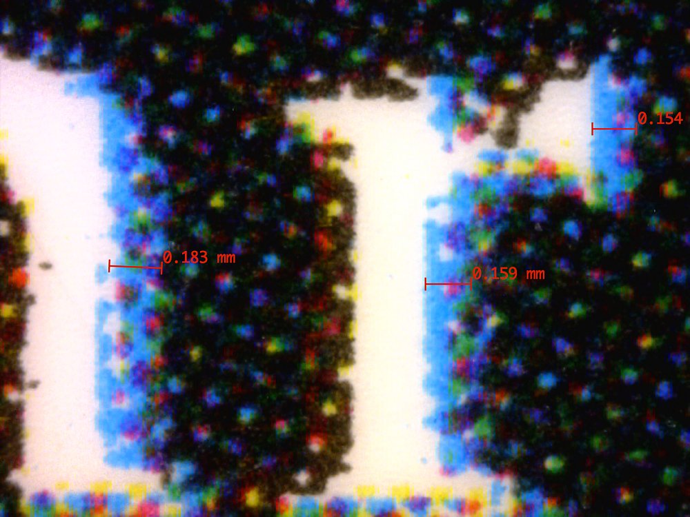 Rasterpunktanalyse mittels Bildanalysesystem zur Bestimmung der Punktgröße, -form, – rundheit, -schärfe.
