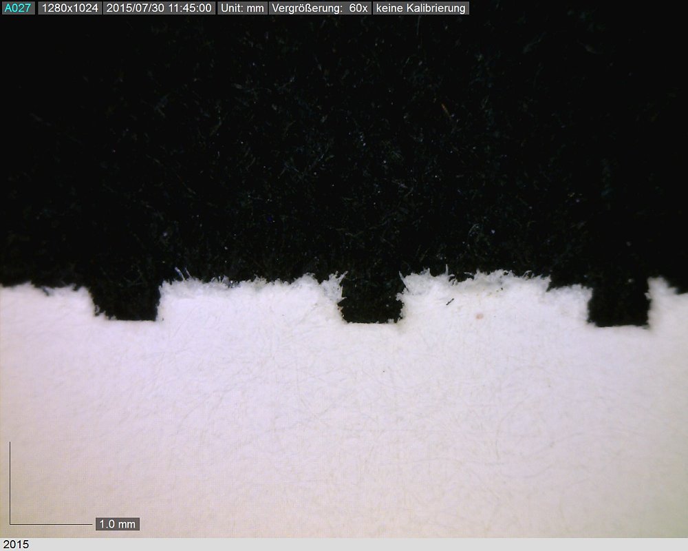 Überprüfung der Qualität einer Perforation mittels Festigkeitsprüfung und mikroskopischer Untersuchung.