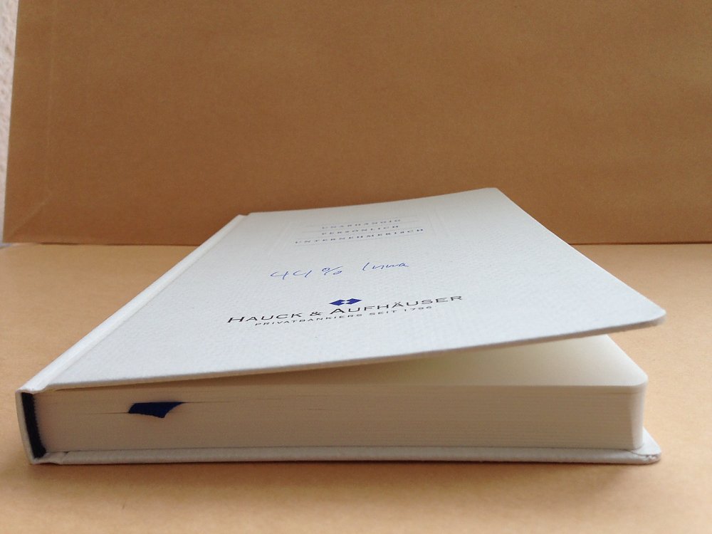 Durch eine schief aufgetragene Klebstoffschicht kam es im hinteren Bereich des Kataloges zum Herauslösen der Seiten aus der Klebebindung.