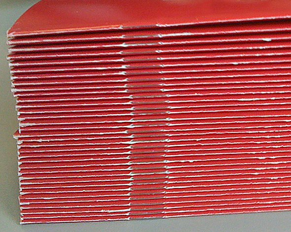 Aufgrund einer unzureichenden Rillkonfiguration (im Bild rechts) wurde die Produktion eines Umschlages zurecht bemängelt.