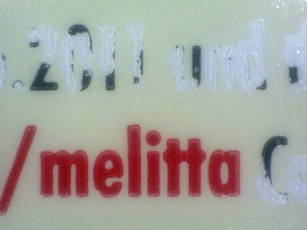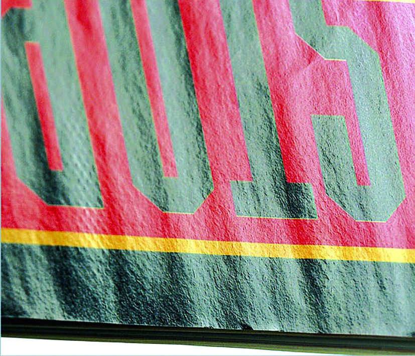 Beispiel für die sehr hohe Farbschichtdicke im Siebdruck.